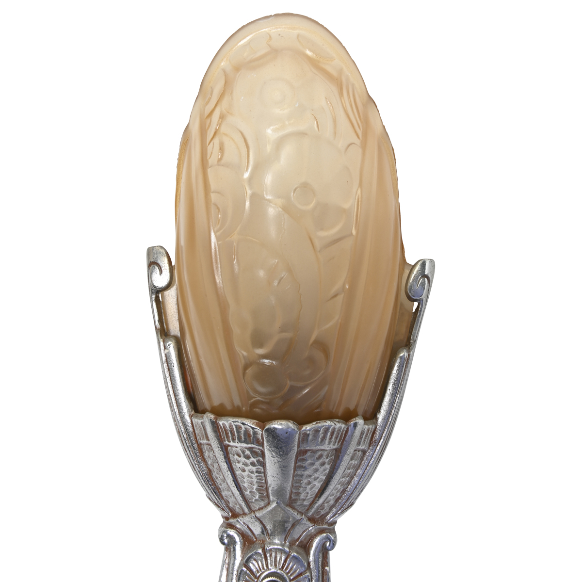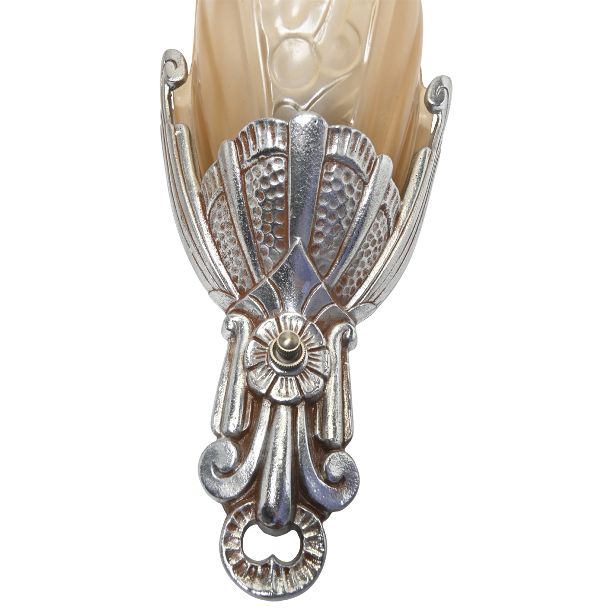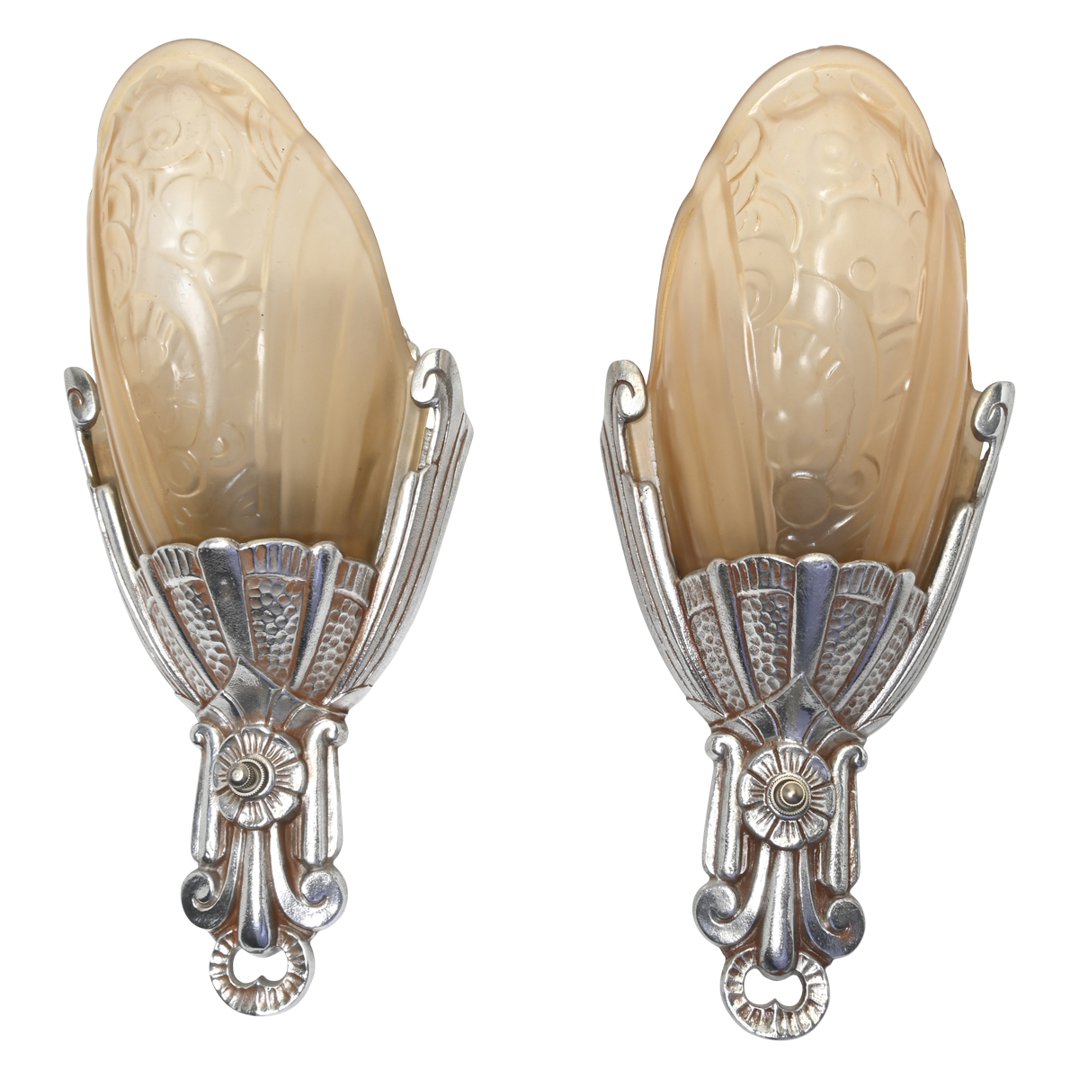 Condition: Have not been tested, working order is not guaranteed. Patina and rust to the bodies. Light chips to the edges of the shades.