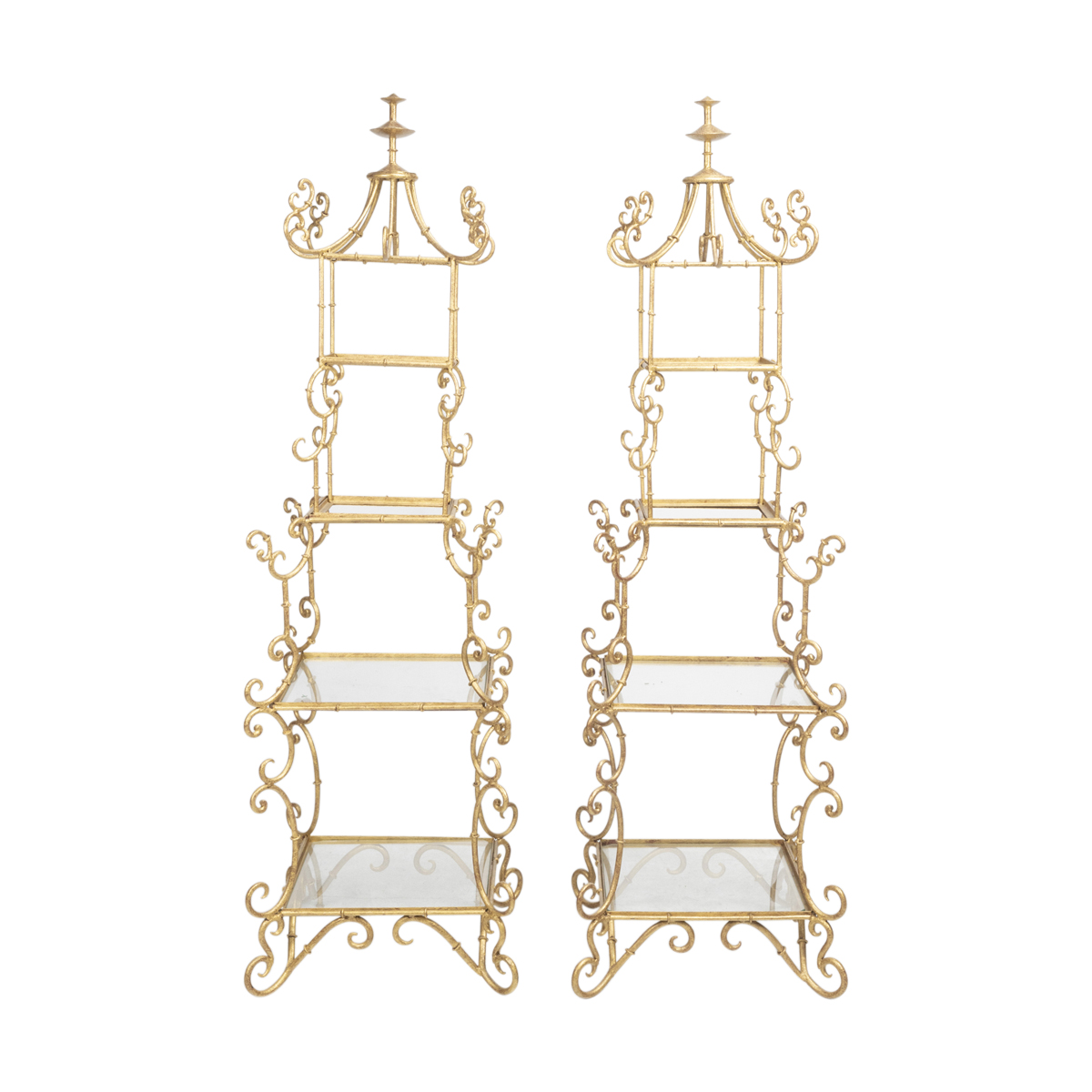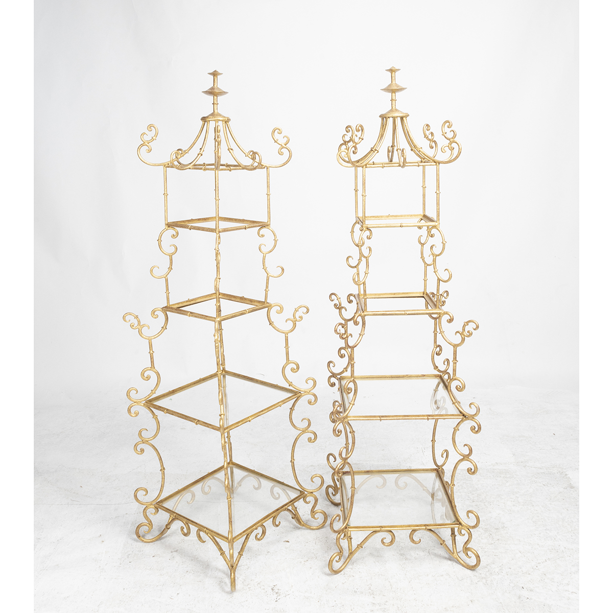 Gilt painted metal frames, each with four tiers.