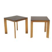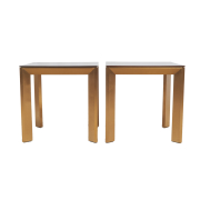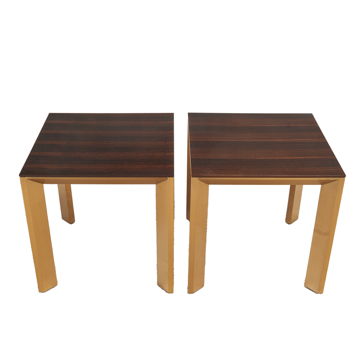 Square resin finish wood tops on brushed gilt brass bases.