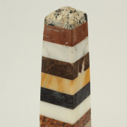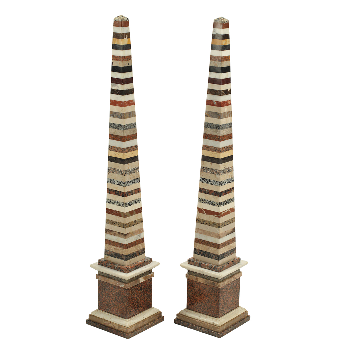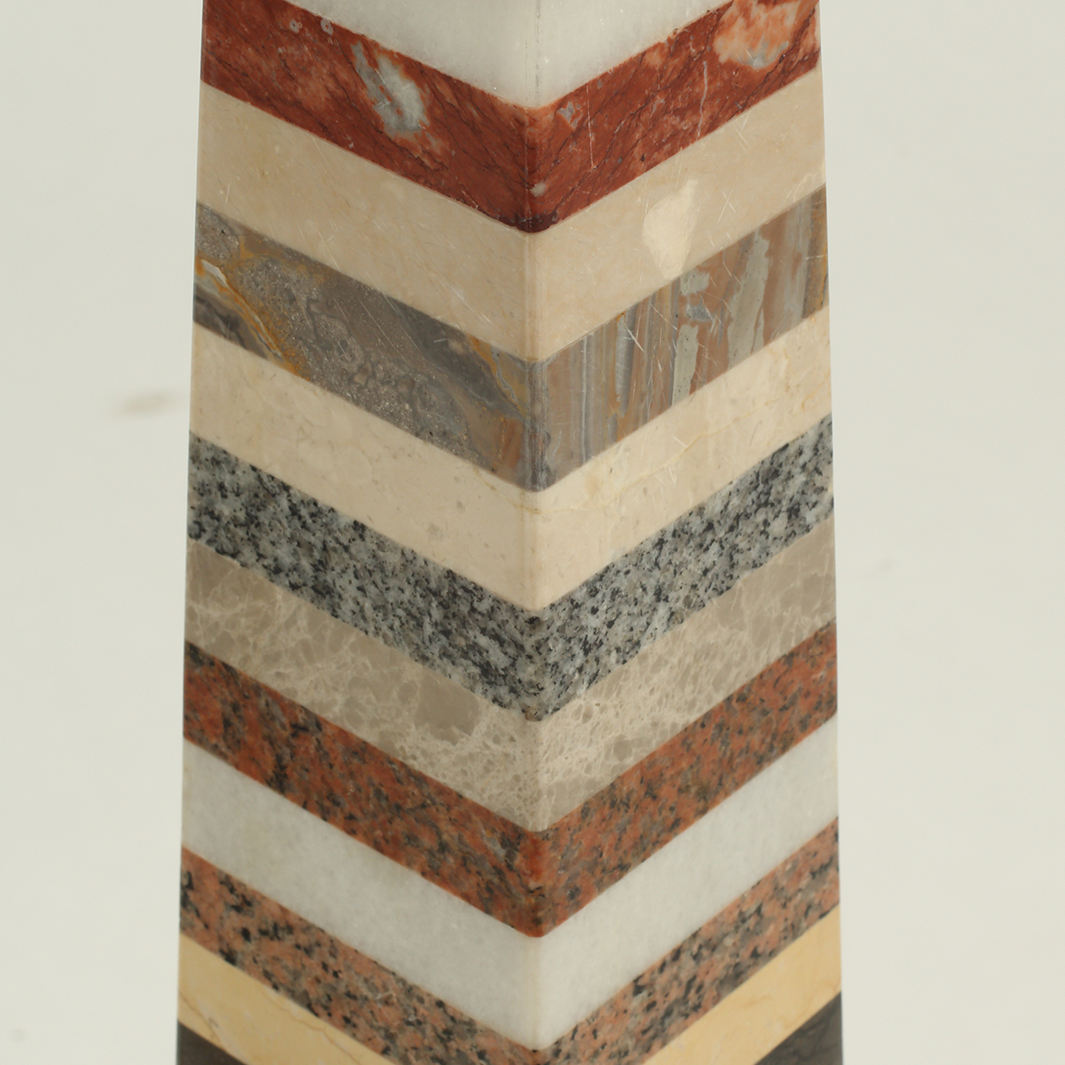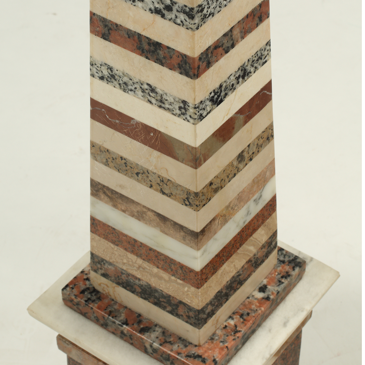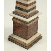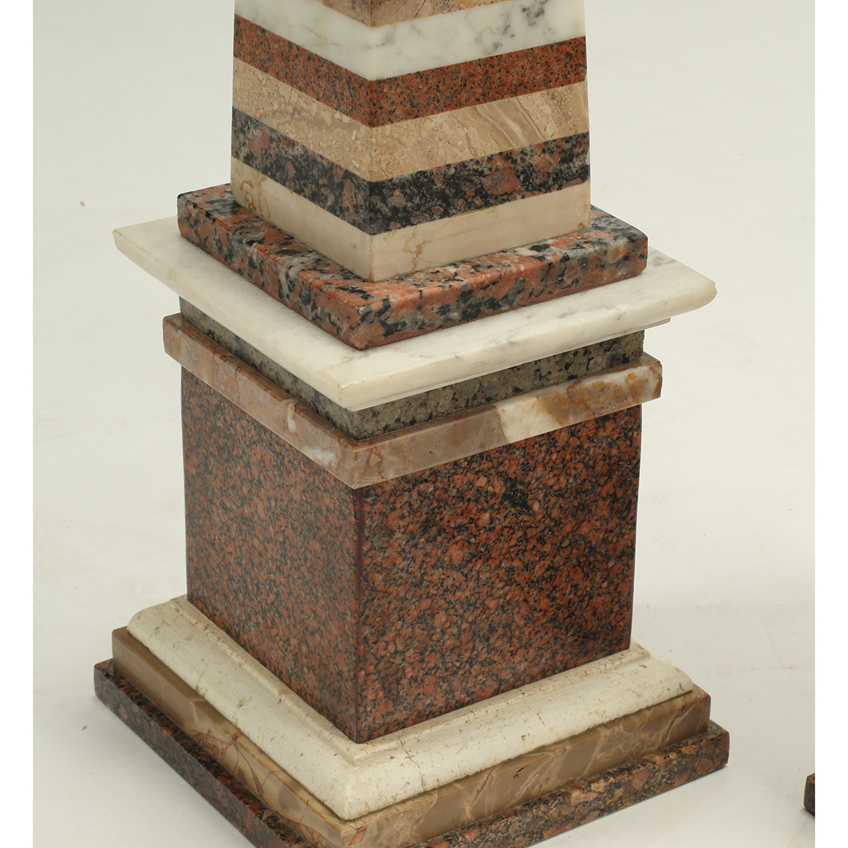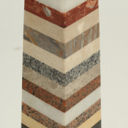 Horizontal bands of various marble, on stepped bases.