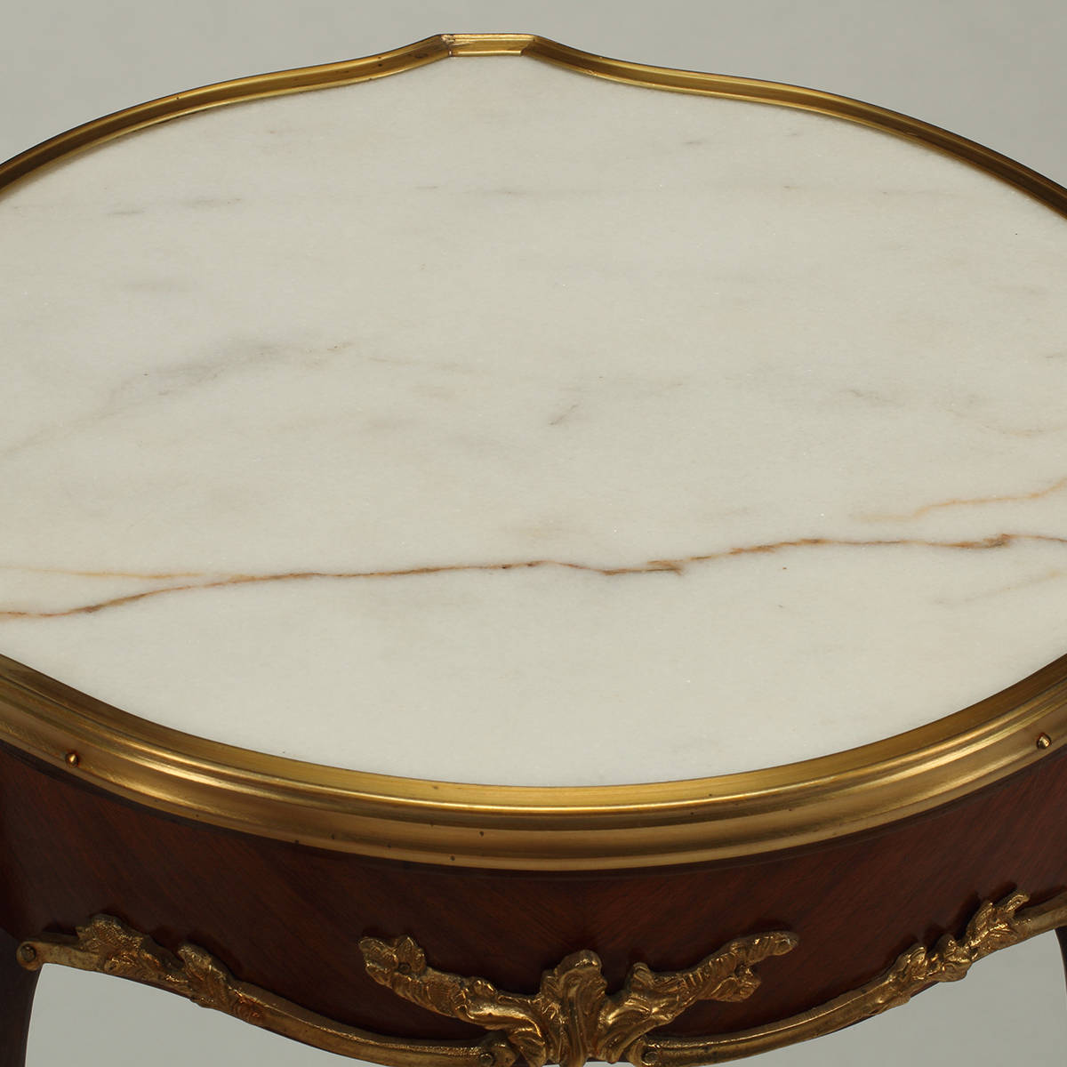Inset white marble tops, gilt metal mounts.