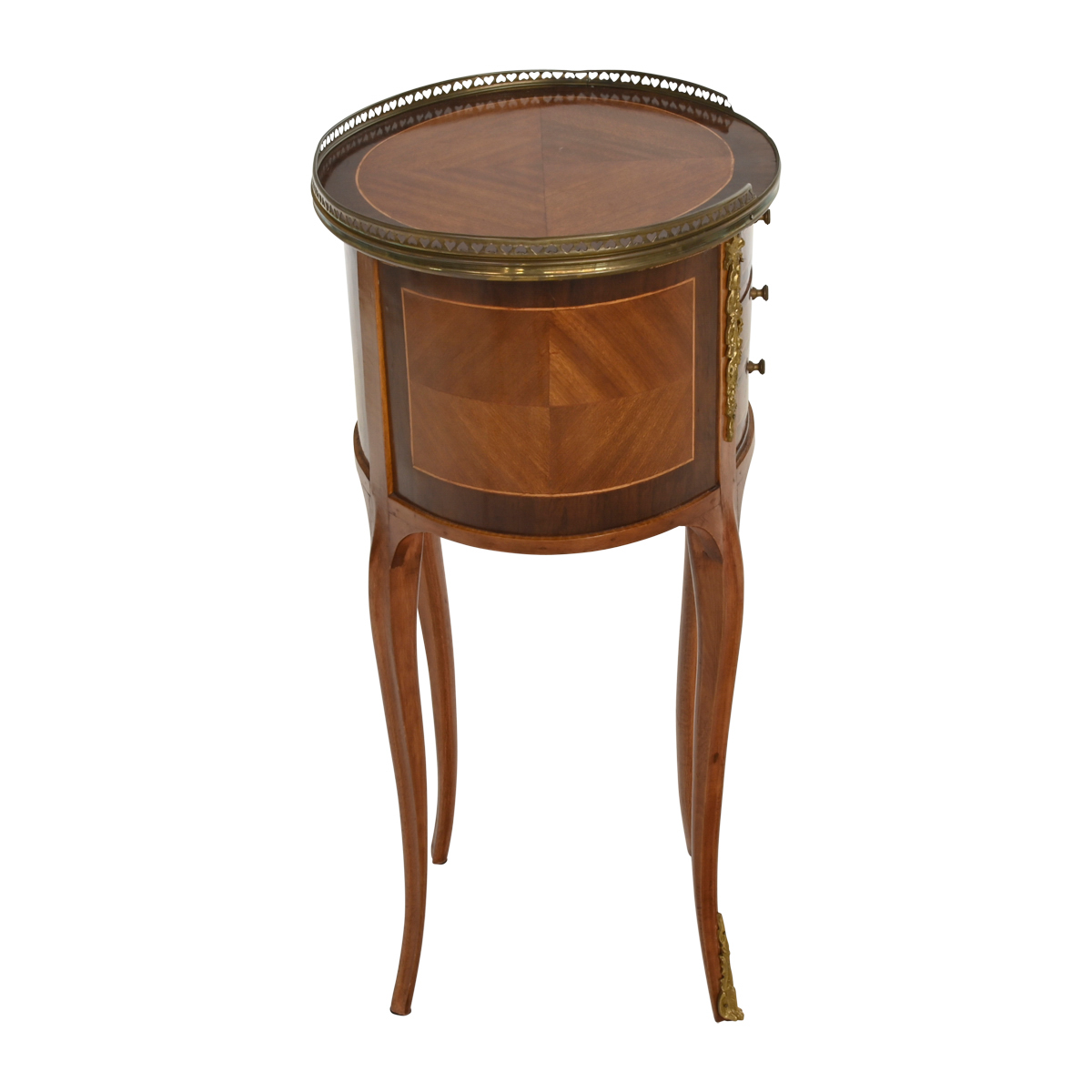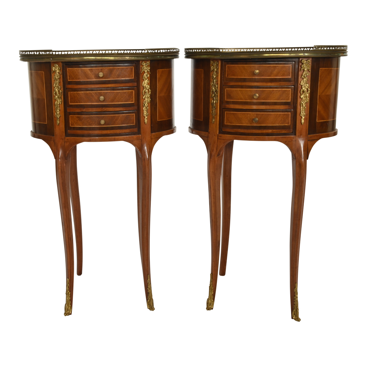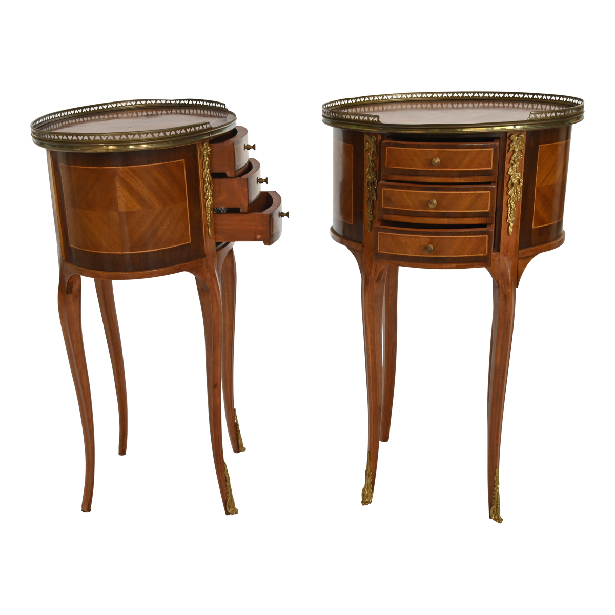 Oval tops with galleries, three small drawers, gilt bronze mounts.