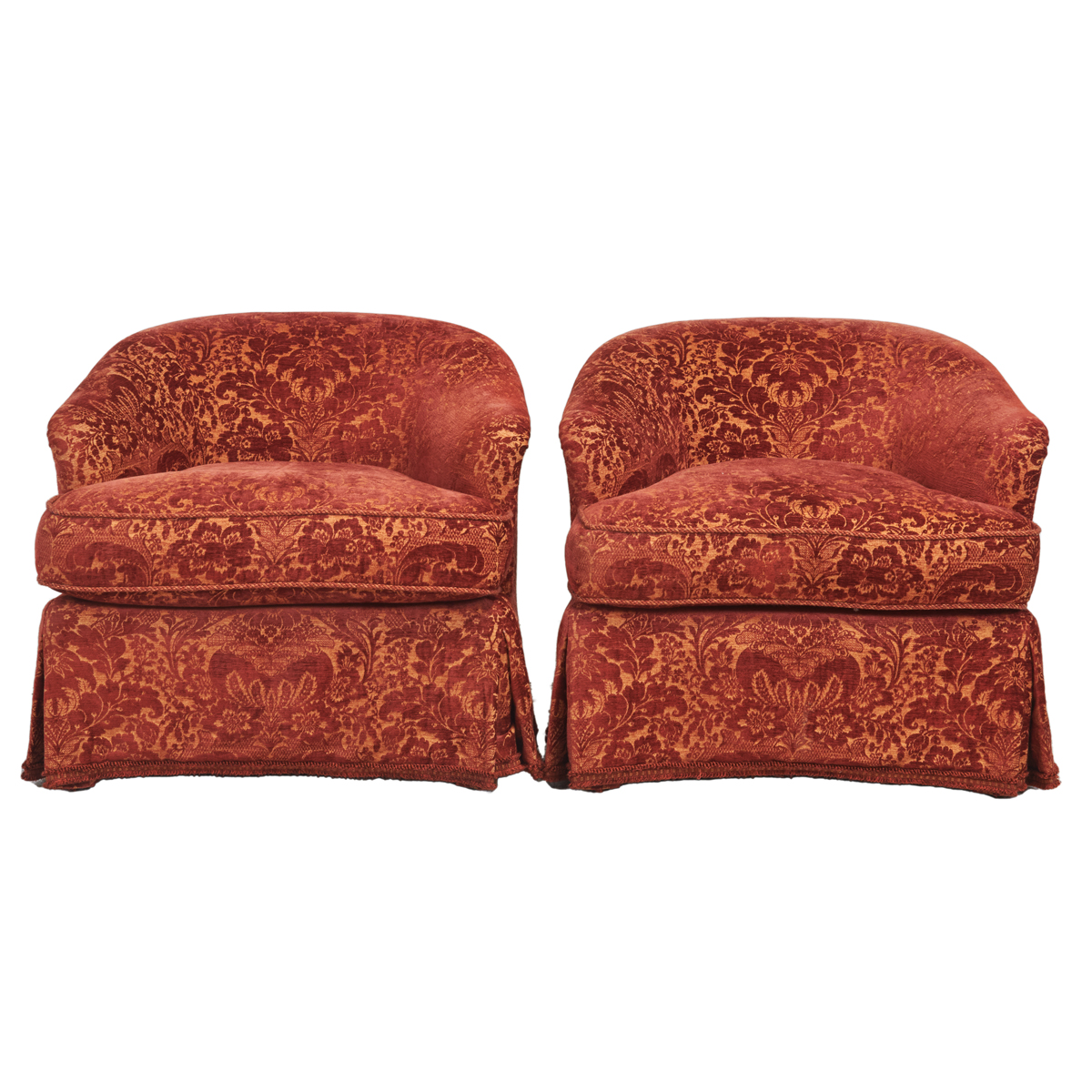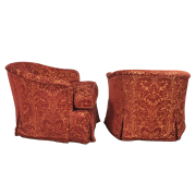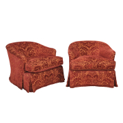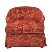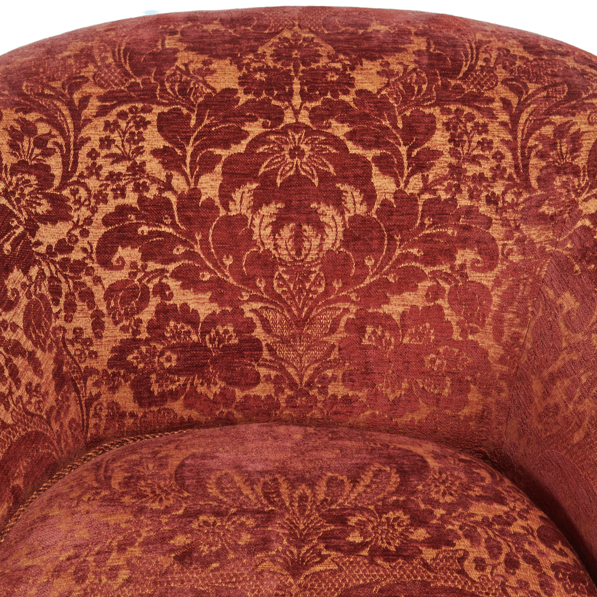 Red on gold floral and foliate motif velvet brocade upholstery.