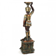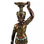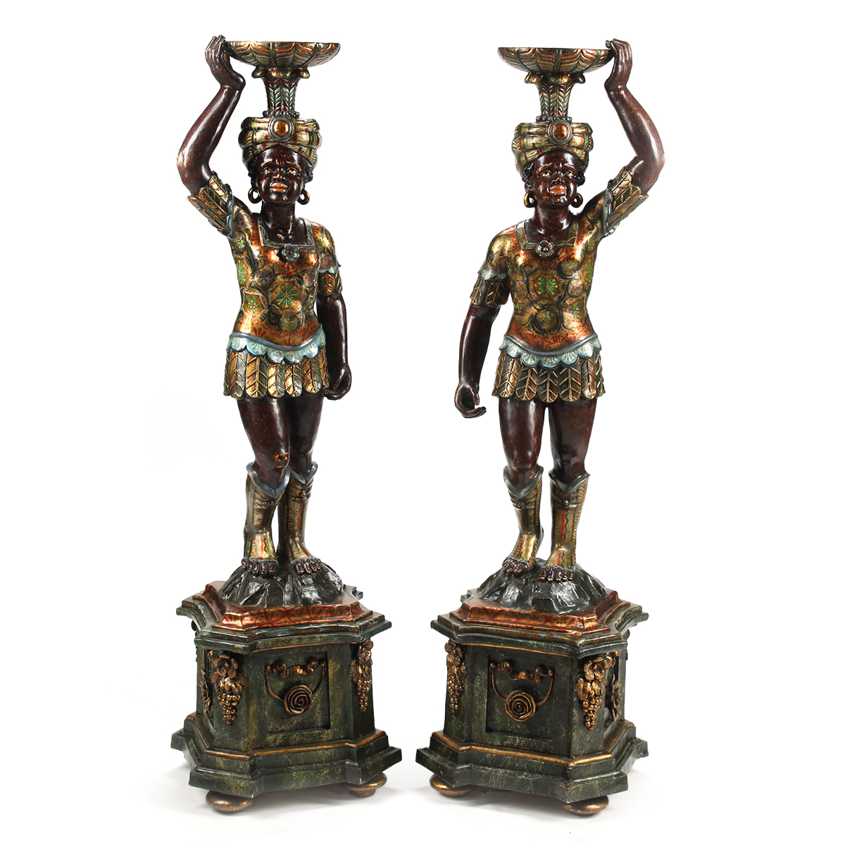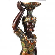 The figures holding bowls on their heads, standing on shaped pedestals.