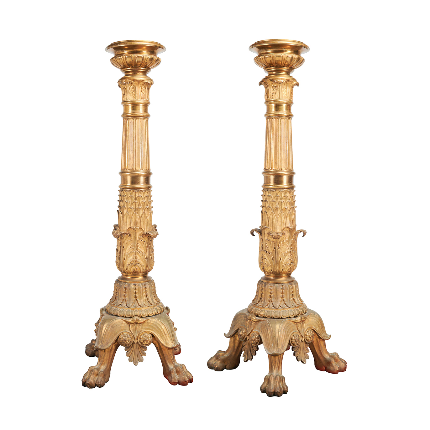 The columns raised on quadrupedal paw foot bases, open tops each in six pieces.