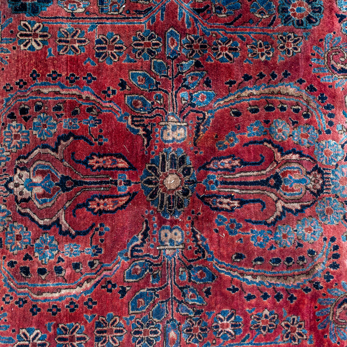 Condition: Wear throughout including fading and stains. Loss to fringe.