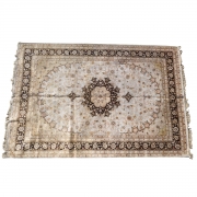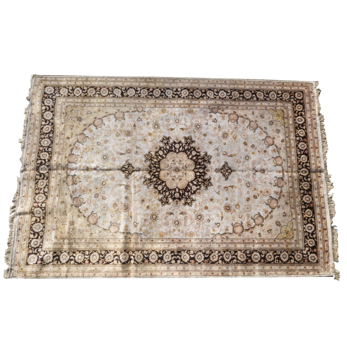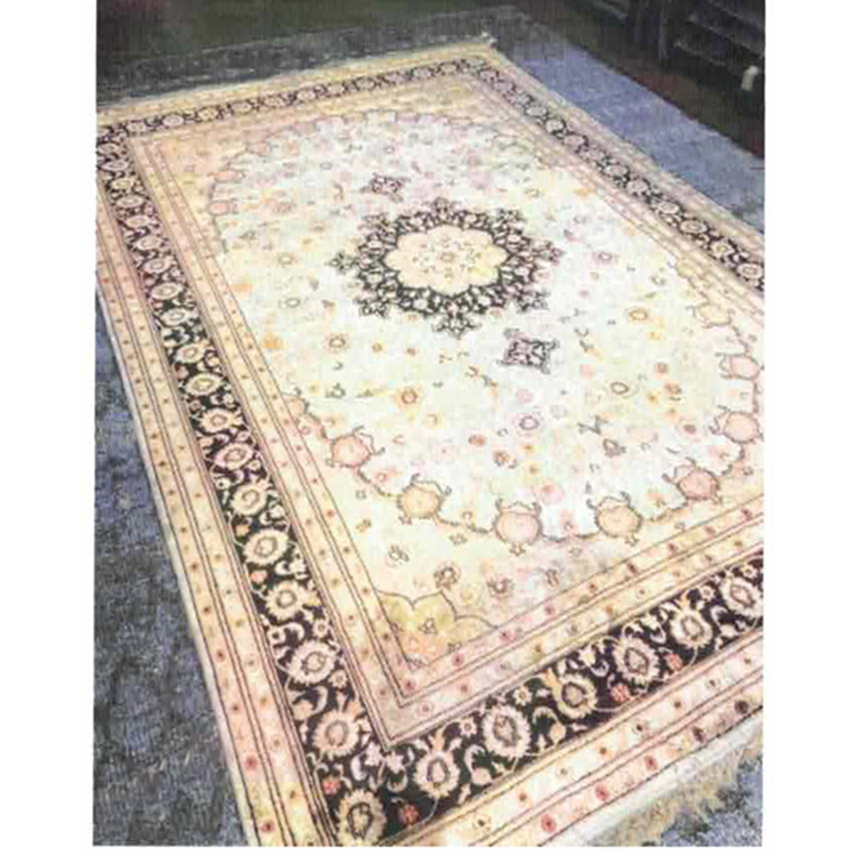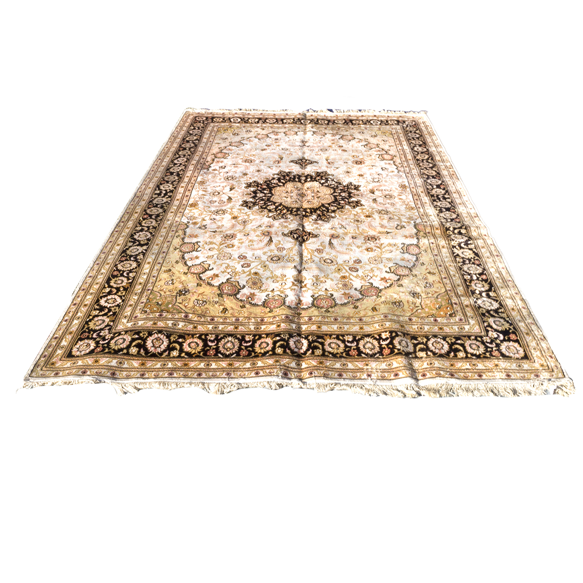 Condition: Some inconsistency in the silk pile, darkening to one end. Some potential bleeding with spots that look to be faint purple.