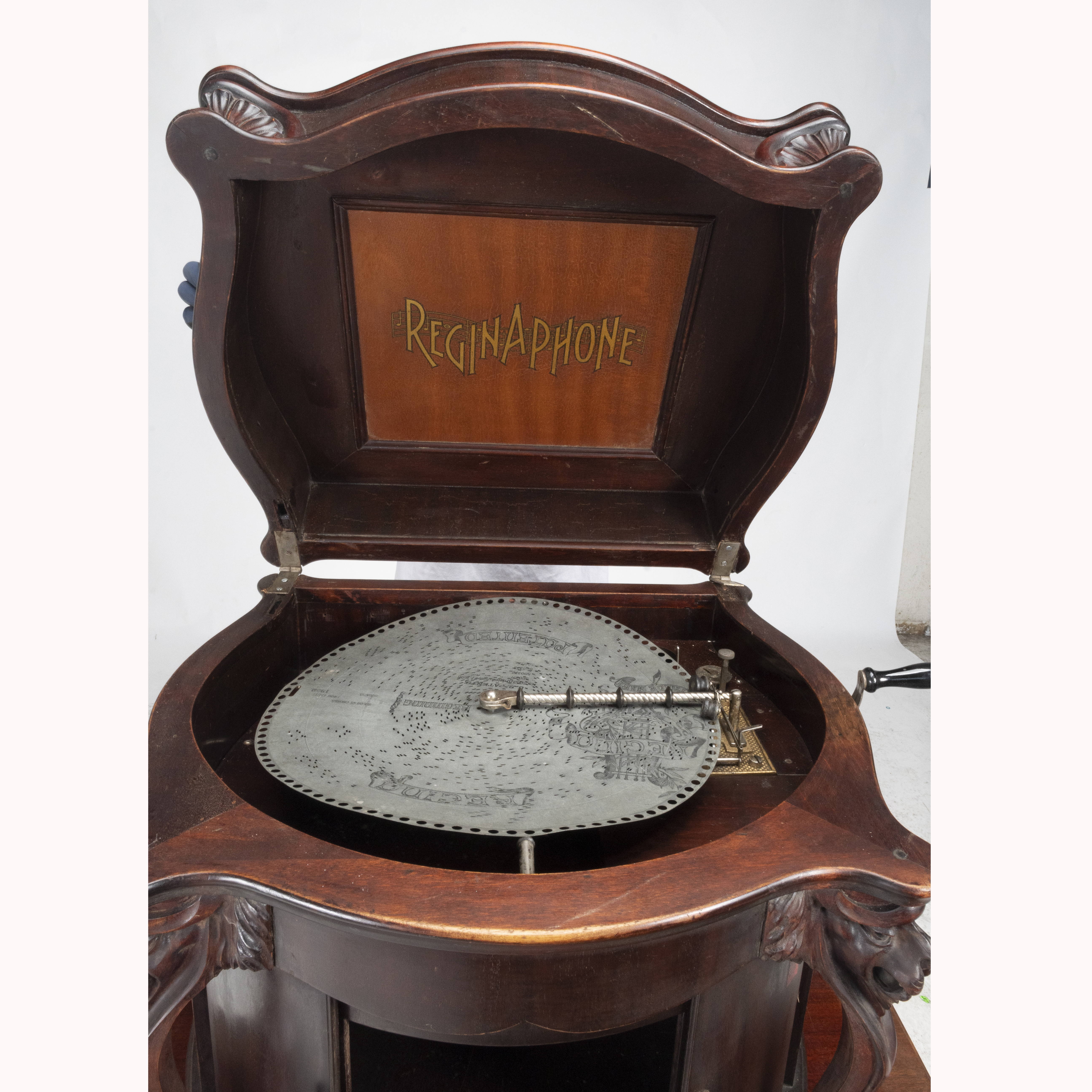 The case with carved lion supports, single disc included: SOLDIERS CHORUS FROM FAUST.