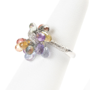 Featuring sixteen multicolored sapphire briolettes weighing a total of approximately 9.85 cttw., accented by seventy-one full-cut diamonds weighing a total of approximately 0.50 cttw., set in an 18k white gold mounting.