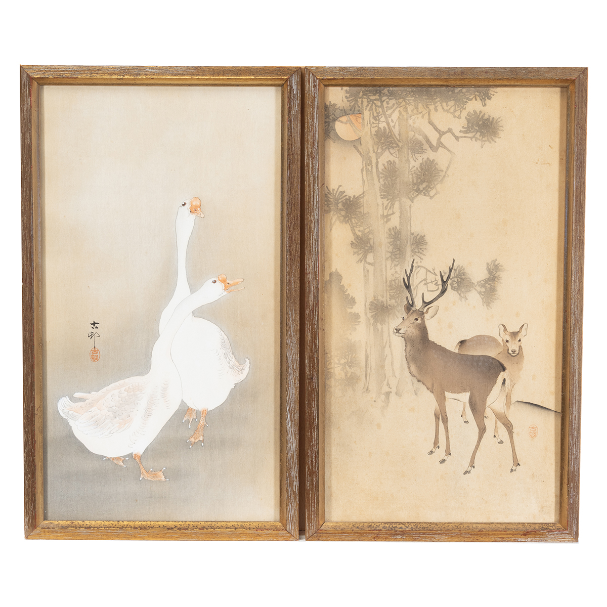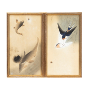 Each depicting birds, fishes and deer. Framed and Glazed.