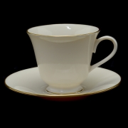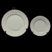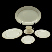 Comprising an oval platter, twelve dinner plates, twelve salad plates, nine bread and butter plates, eleven saucers, and twelve teacups.