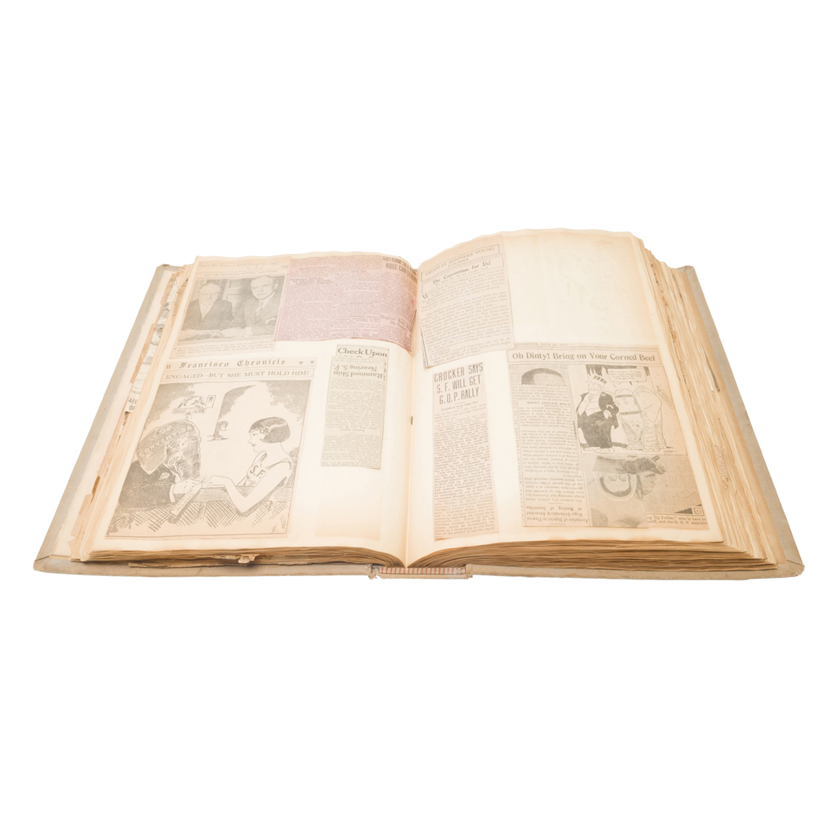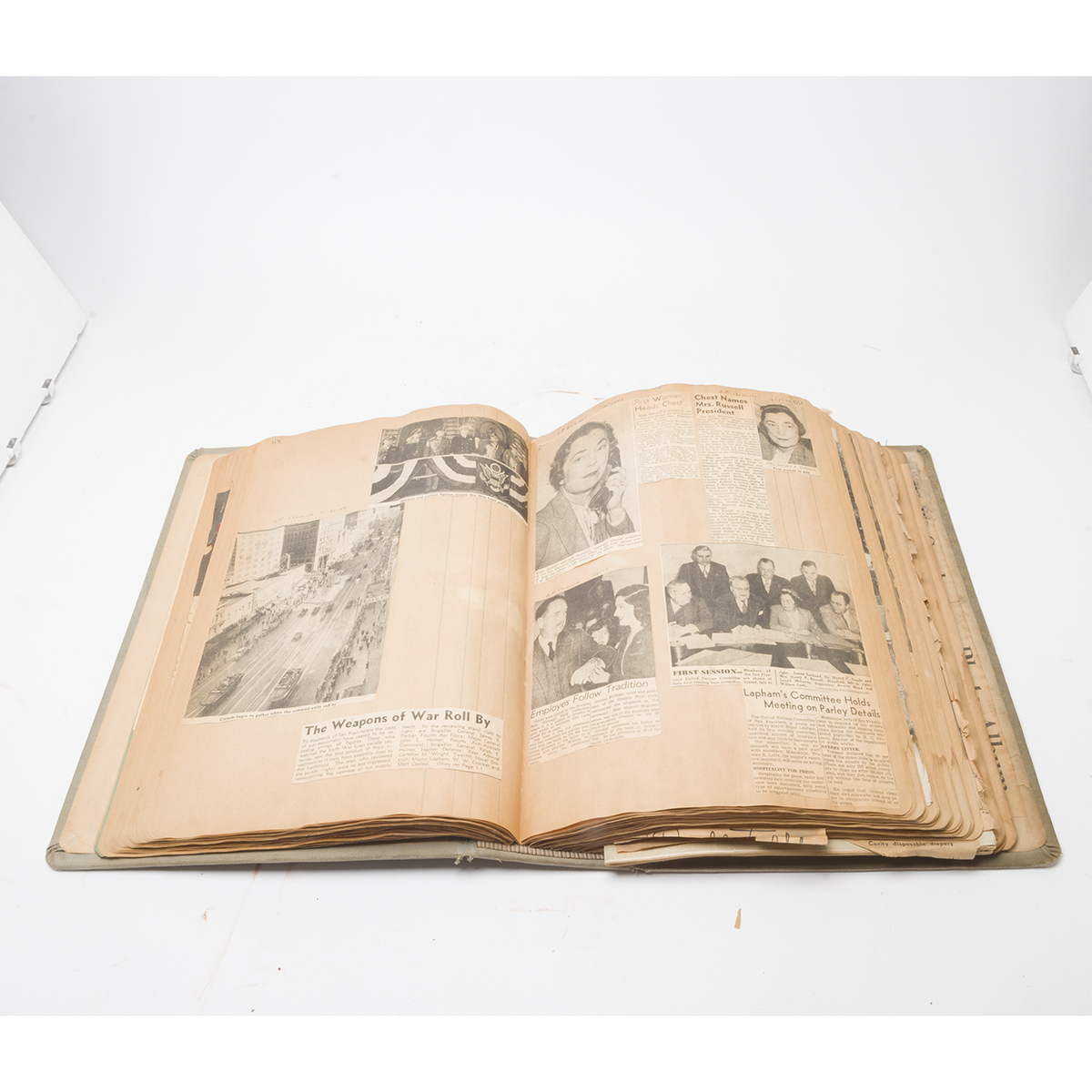 Condition: Wear and aging throughout. Paper to scrapbooks is brittle, torn, and discolored. Wear to covers and binding.