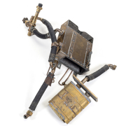 Comprising the helmet, canvas suit, boots with weight inserts, and pack with cover and insert the helmet with port marked TELEPHONE, various hoses attached to the pack.