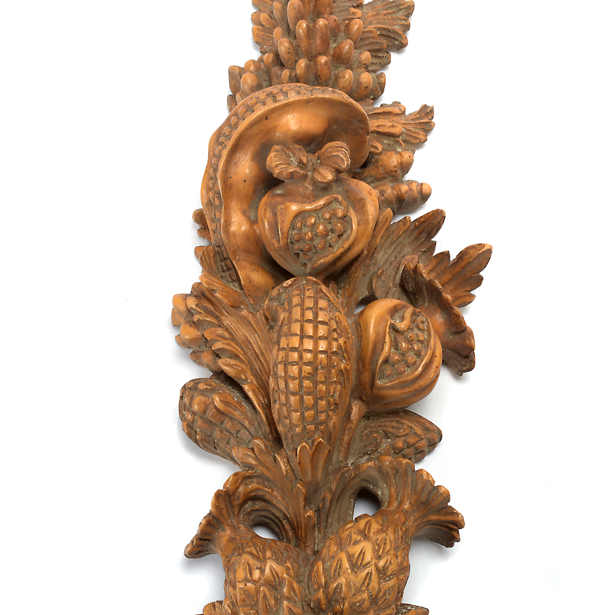 Condition: Minor surface wear to the finish. Minor damage to the bow of one vertical swag.