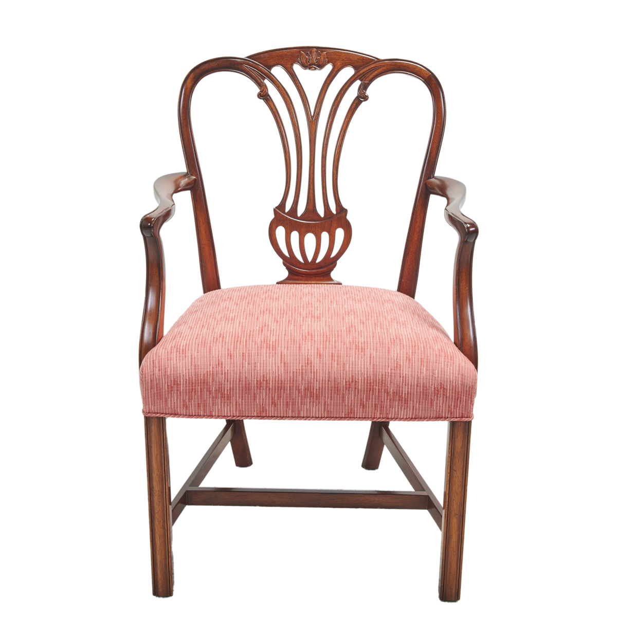 Approximate dimensions: Armchairs 38 1/2 high x 25 wide x 22 1/2 deep, side chairs 38 1/4 high x 22 3/4 wide x 21 deep..