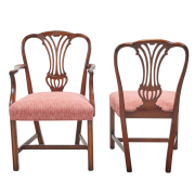 Condition: Minor wear, some light scratches and scuffs to edges. Side chair with chips to finish on crown rail.