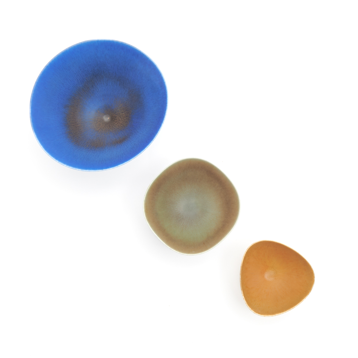 Berndt Friberg (Swedish, 1899-1981) comprising blue example, pale green example, and light brown example.