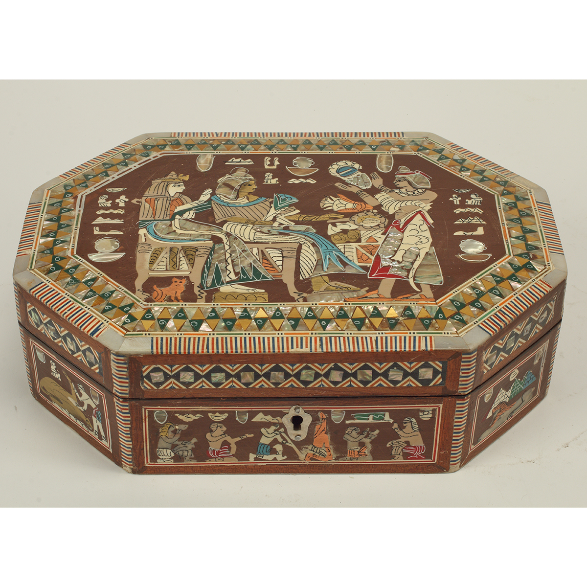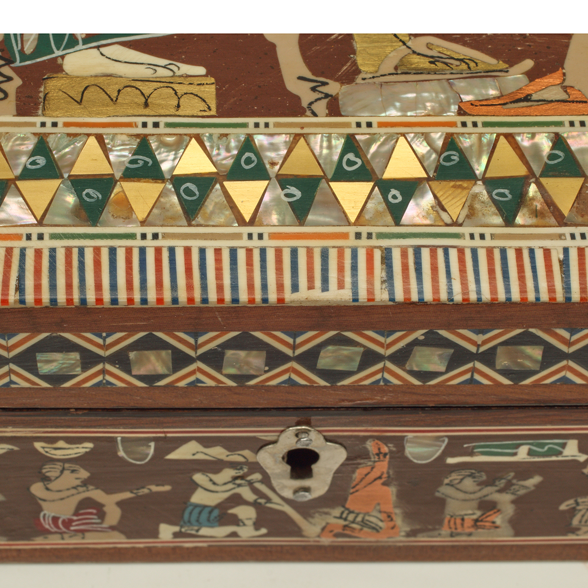 Comprising rectangular shell inlaid example, stone inlaid example, and Egyptian style example.