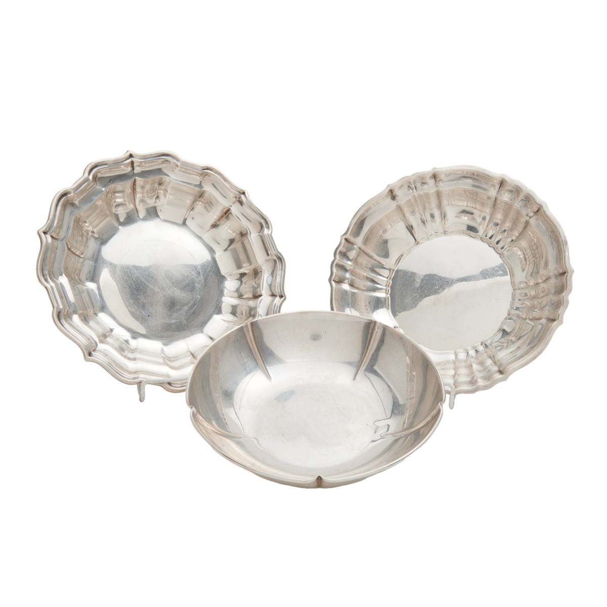 Comprising Gorham Chippendale bowl, Frank Smith Chippendale bowl, Randahl lobed bowl.