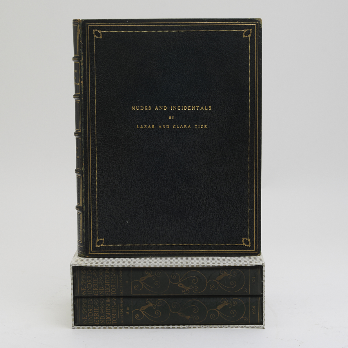 Nudes and Incidentals by Lazar and Clara Tice (American, 1888-1973). Text by Louis Finkelstein. Together with the two-volume cased set of 100 Hundred Merrie and Delightsome Stories (Les Cent Nouvelles Nouvelles). The latter with introduction by Arthur Machen.