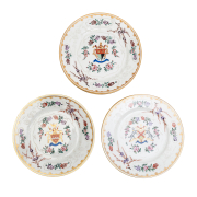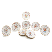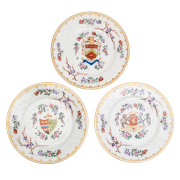 Condition: Overall condition ranges from very good to good one plate with 1/8 chip to rim underside one plate with firing flaw to under-rim and a few scattered brown-black speckles.
