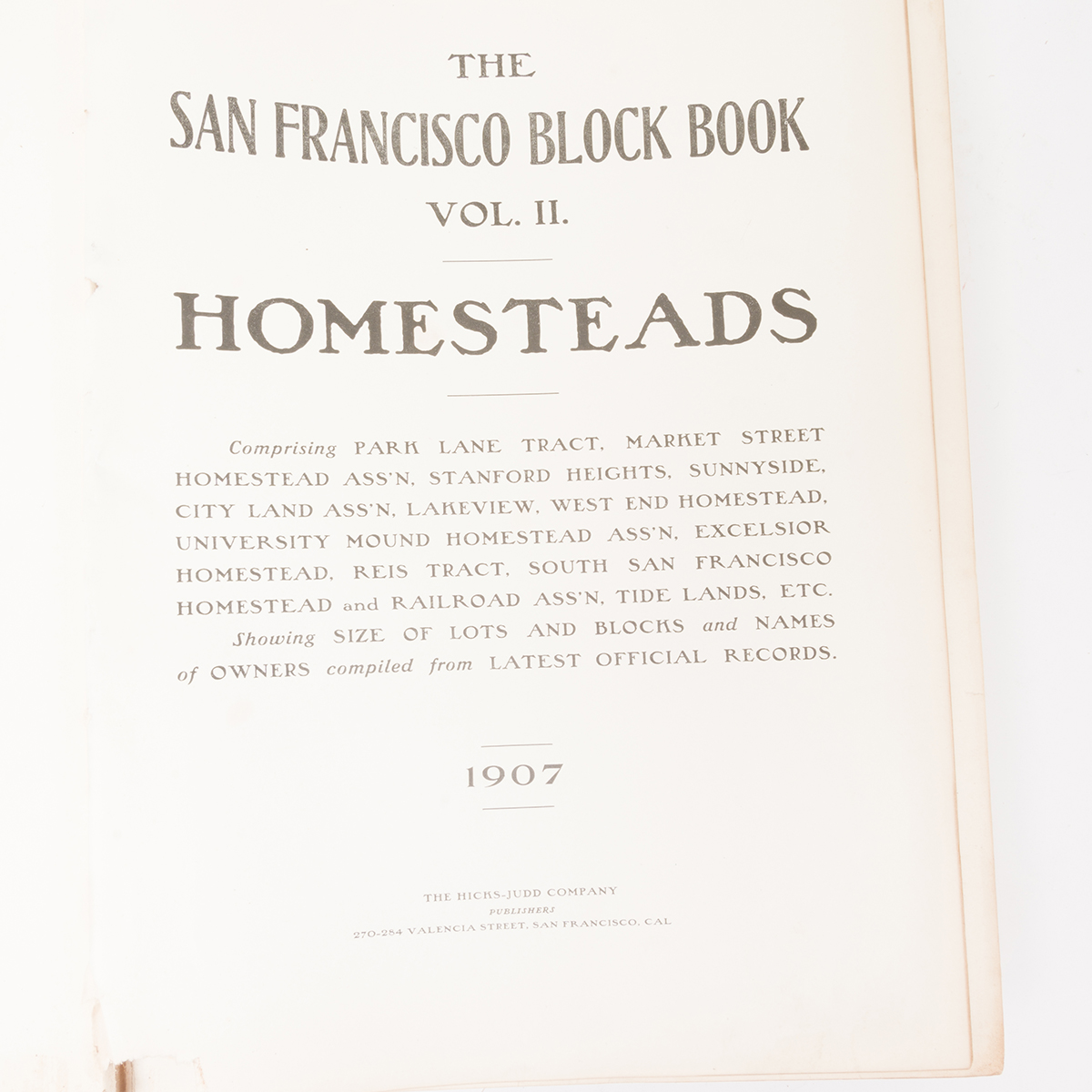 Merys Block Book of San Francisco: 1909 and Hicks-Judd San Francisco Homesteads: 1907