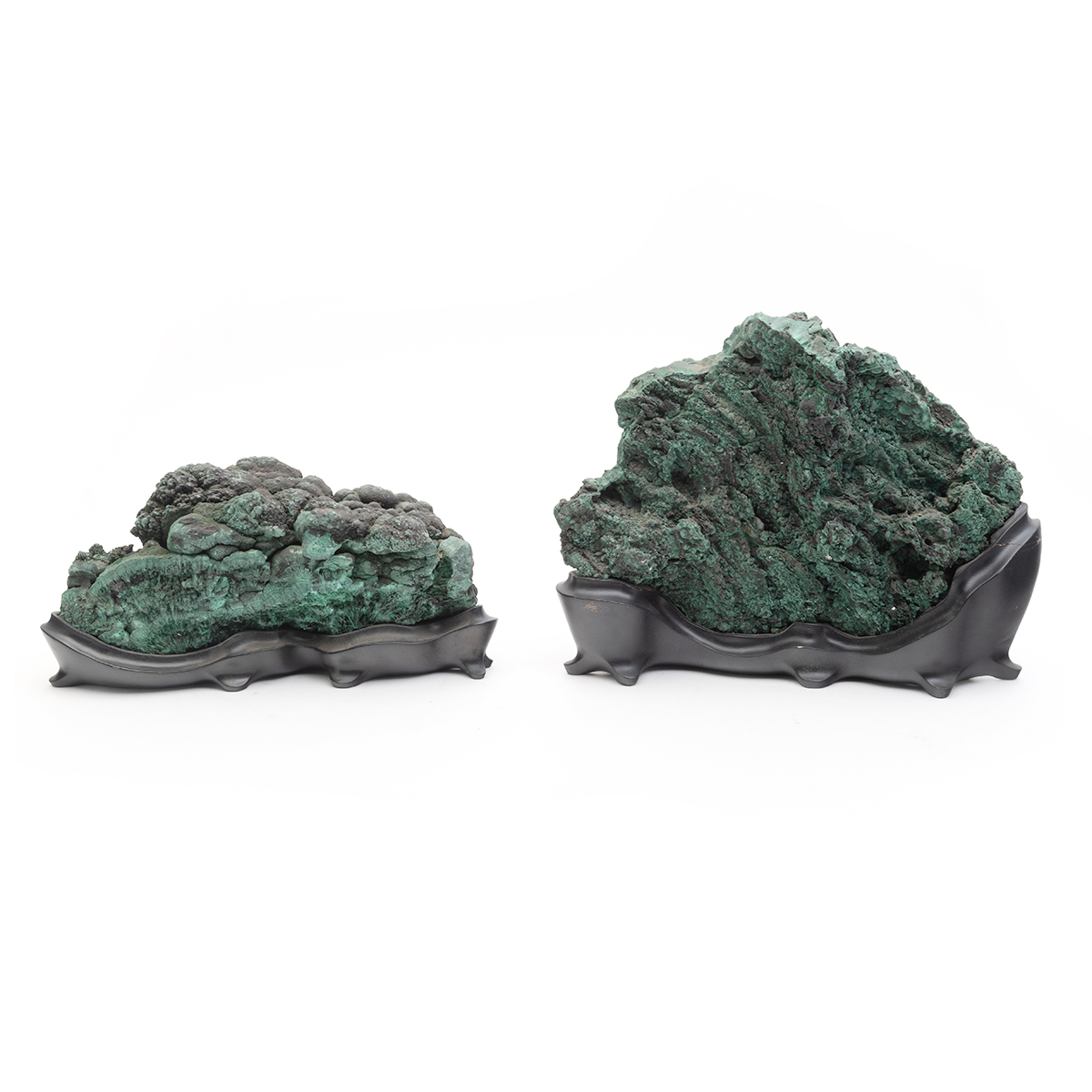 Approximate dimensions not including stands: Larger specimen 9 high x 12 1/2 wide x 3 3/4 deep, smaller specimen 5 high x 11 1/4 wide x 3 1/2 deep..