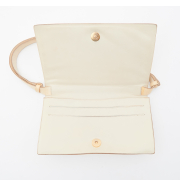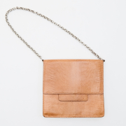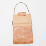 Approximate dimensions: Caramel leather bag 8 3/4 high x 9 wide, strap drop 13 cream leather bag 5 1/2 high x 9 1/2 wide, strap drop 7 1/2..