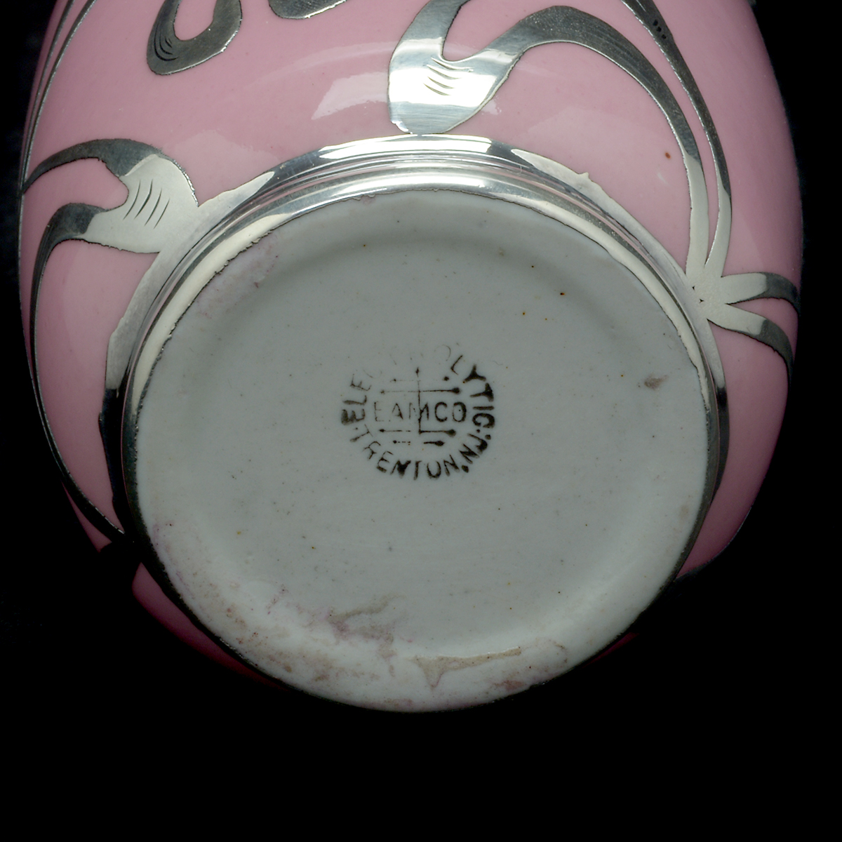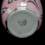 Green crossed L mark to the pitcher underside. Black Eamco mark to the vase, Sterling to the overlay.