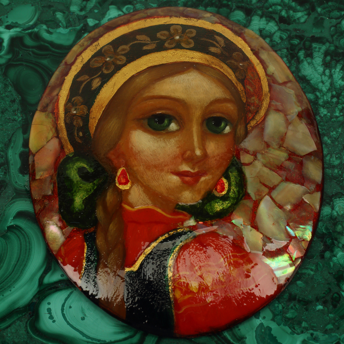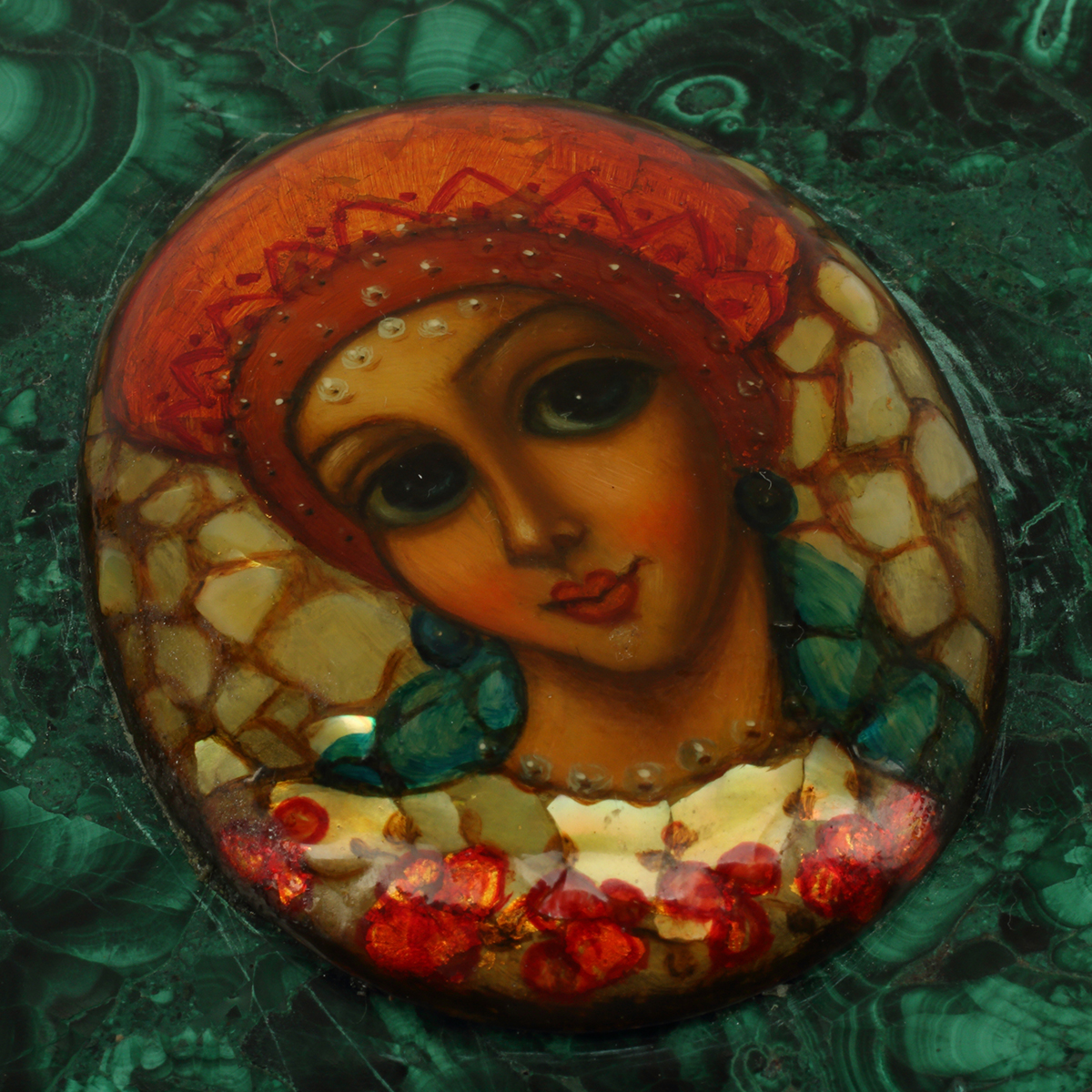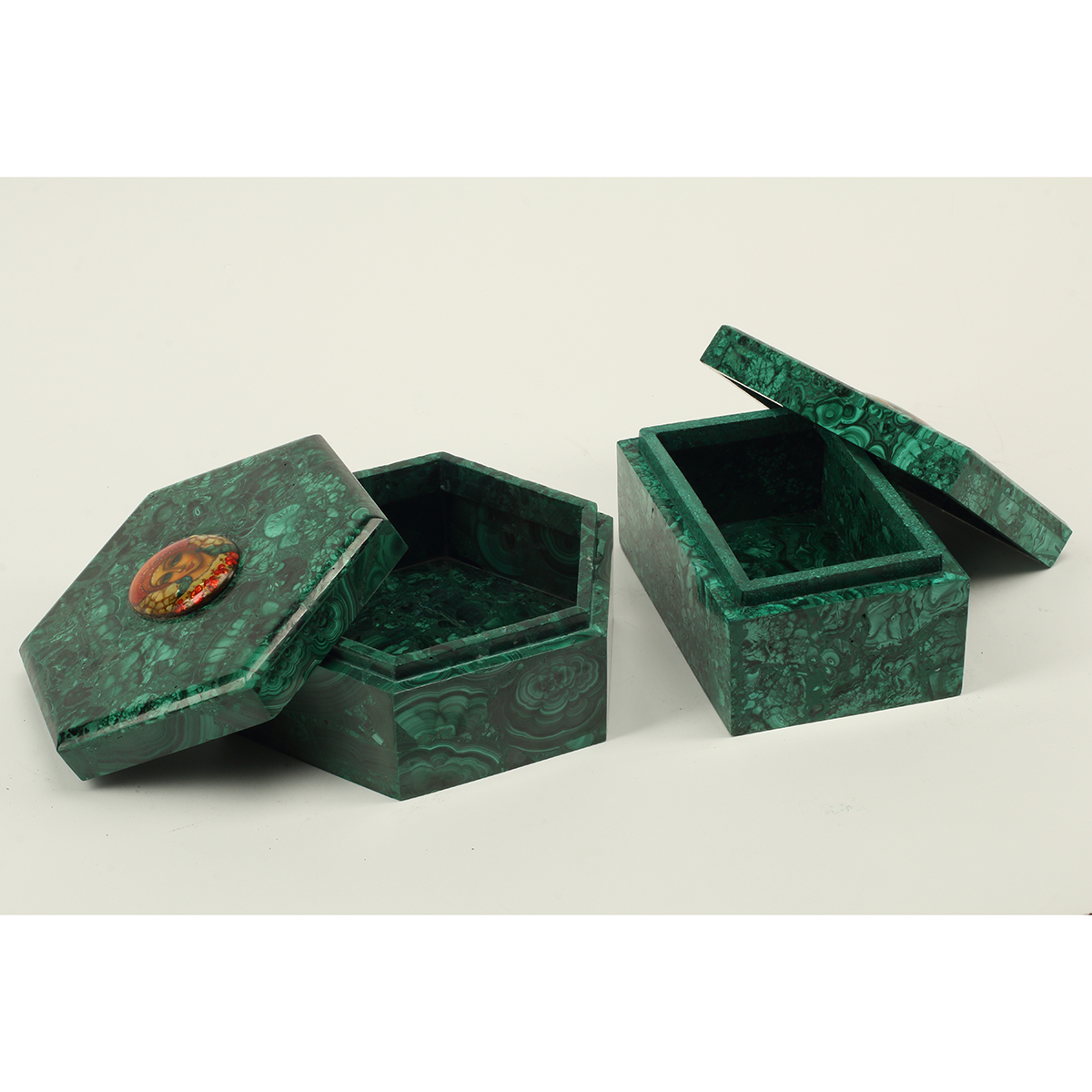 Comprising hexagonal box and rectangular box, both with oval lacquer female portrait cartouches to the covers.