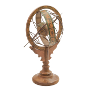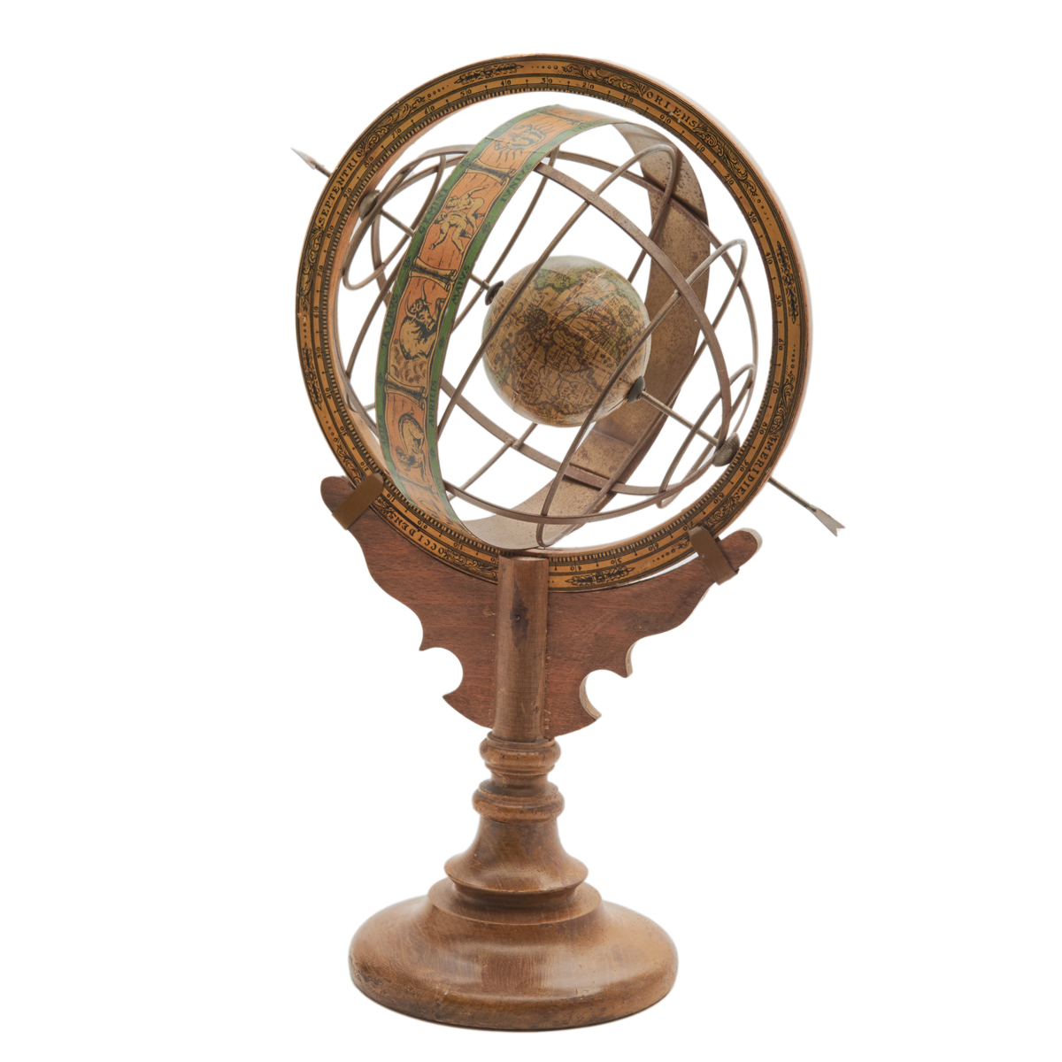 Wood base, metal body, printed paper.