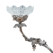 Condition: Candelabra assembly is loose. Some patina and surface wear throughout. Glass with minimal wear, later replacements. Some wax remnants to candelabra.