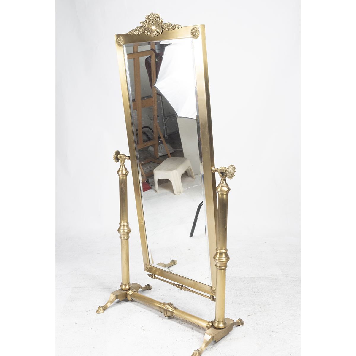 Oak leaf swag to the crown, rosettes to corners, the base with hand form supports.
