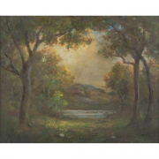 (approximate dimensions - sight: 9 1/2 x 11 1/2 inches, canvas: 10 x 12 inches)
