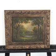 Condition: Visible inpaint under UV light. Surface dust, varnish aging, discoloration, and slight crazing. Wear to edges and slight frame abrasion. Dirt pockets, keys, slight embrittlement, and mildew to canvas verso. Ask Fine Art Department for more information.