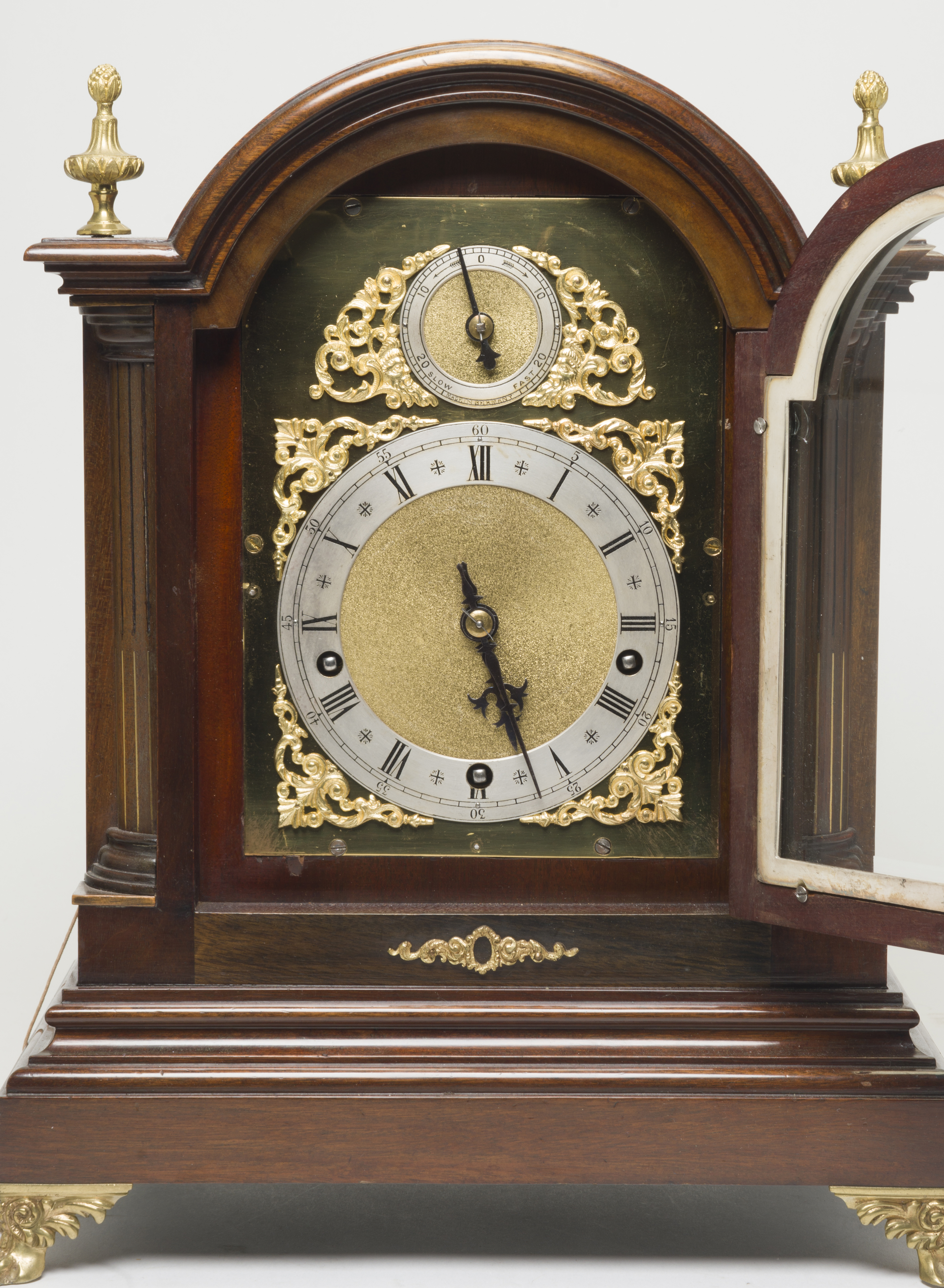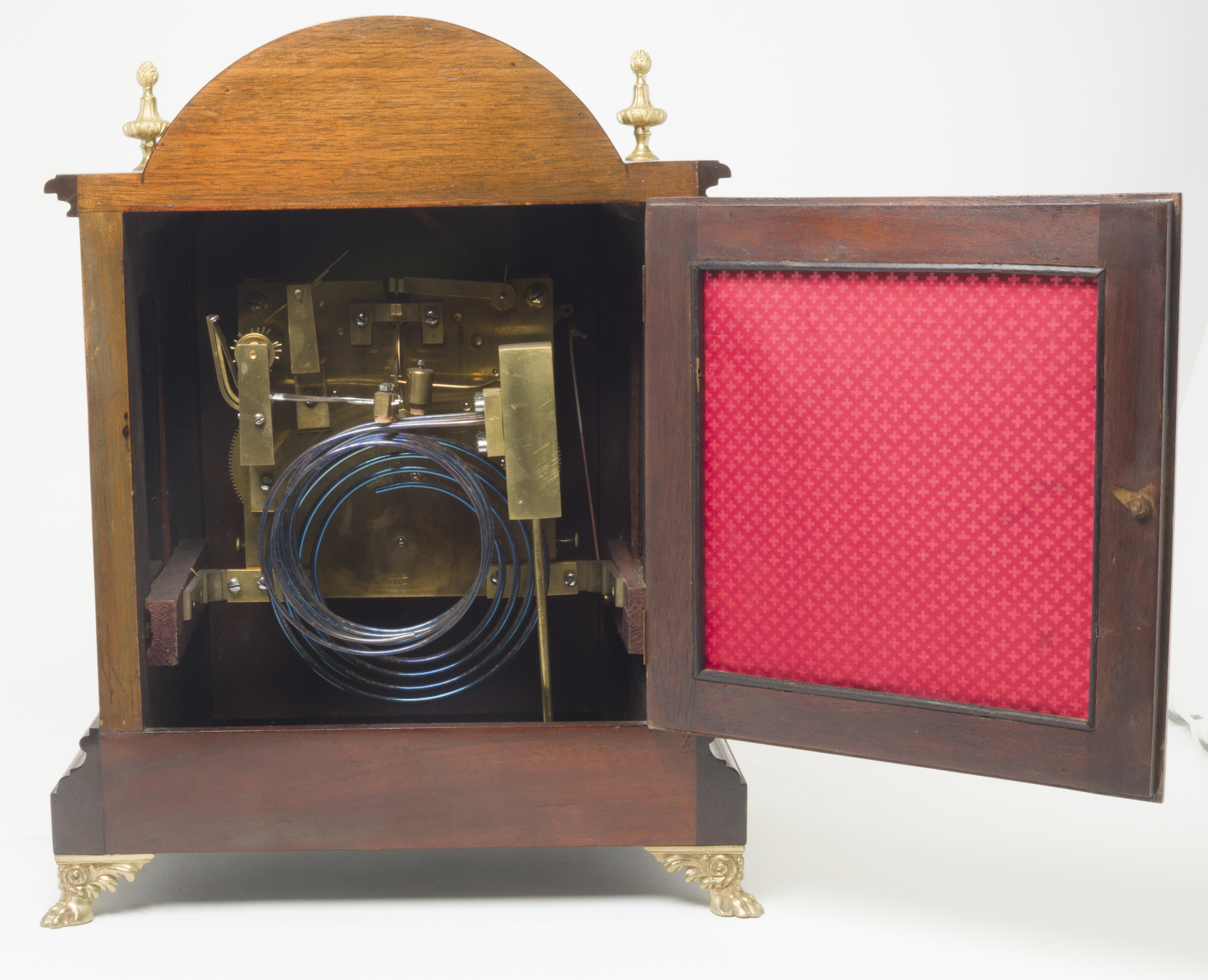 Walnut case, gilt metal mounts five spiral gong chimes to the movement lacking pendulum and winder.