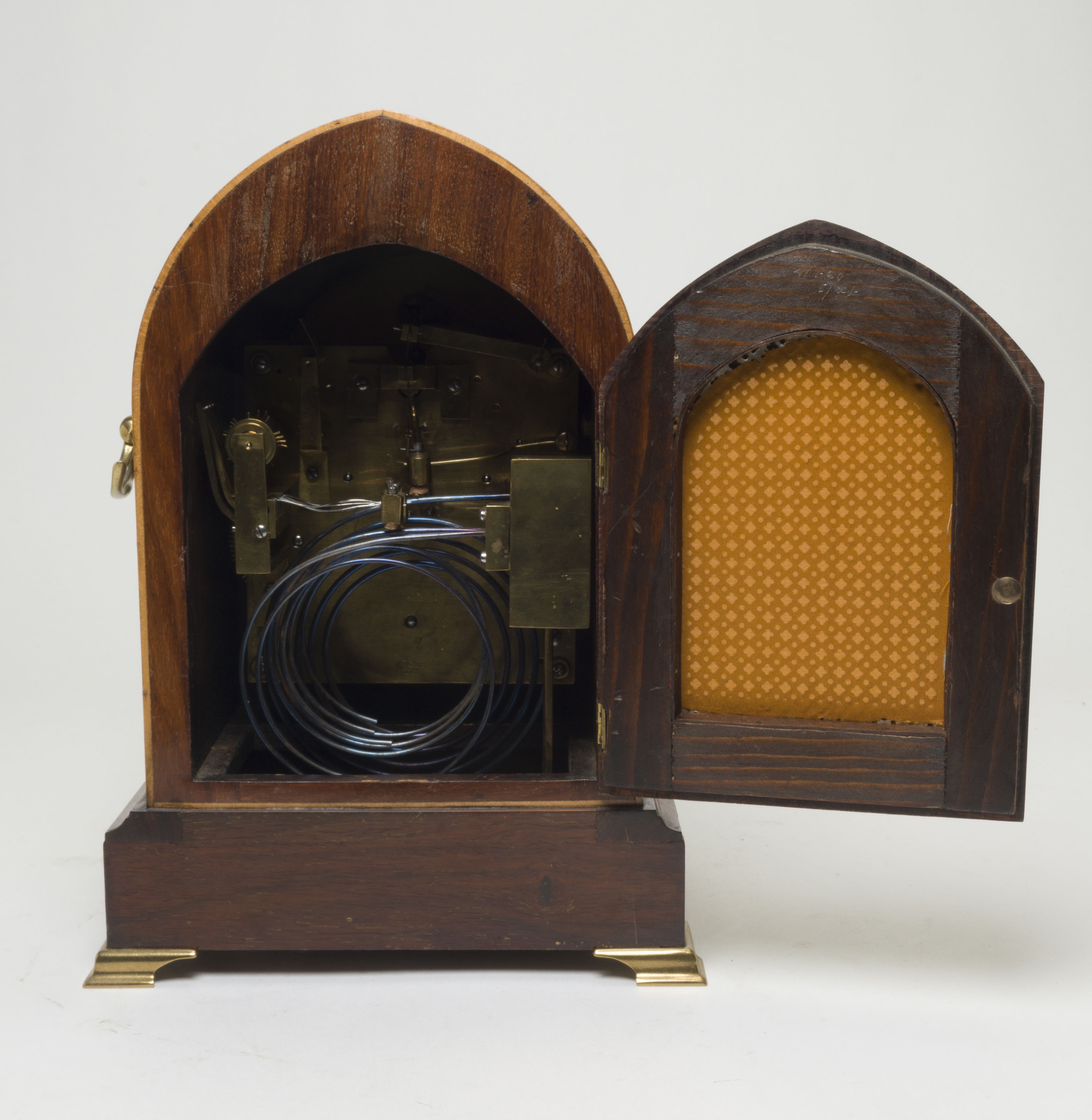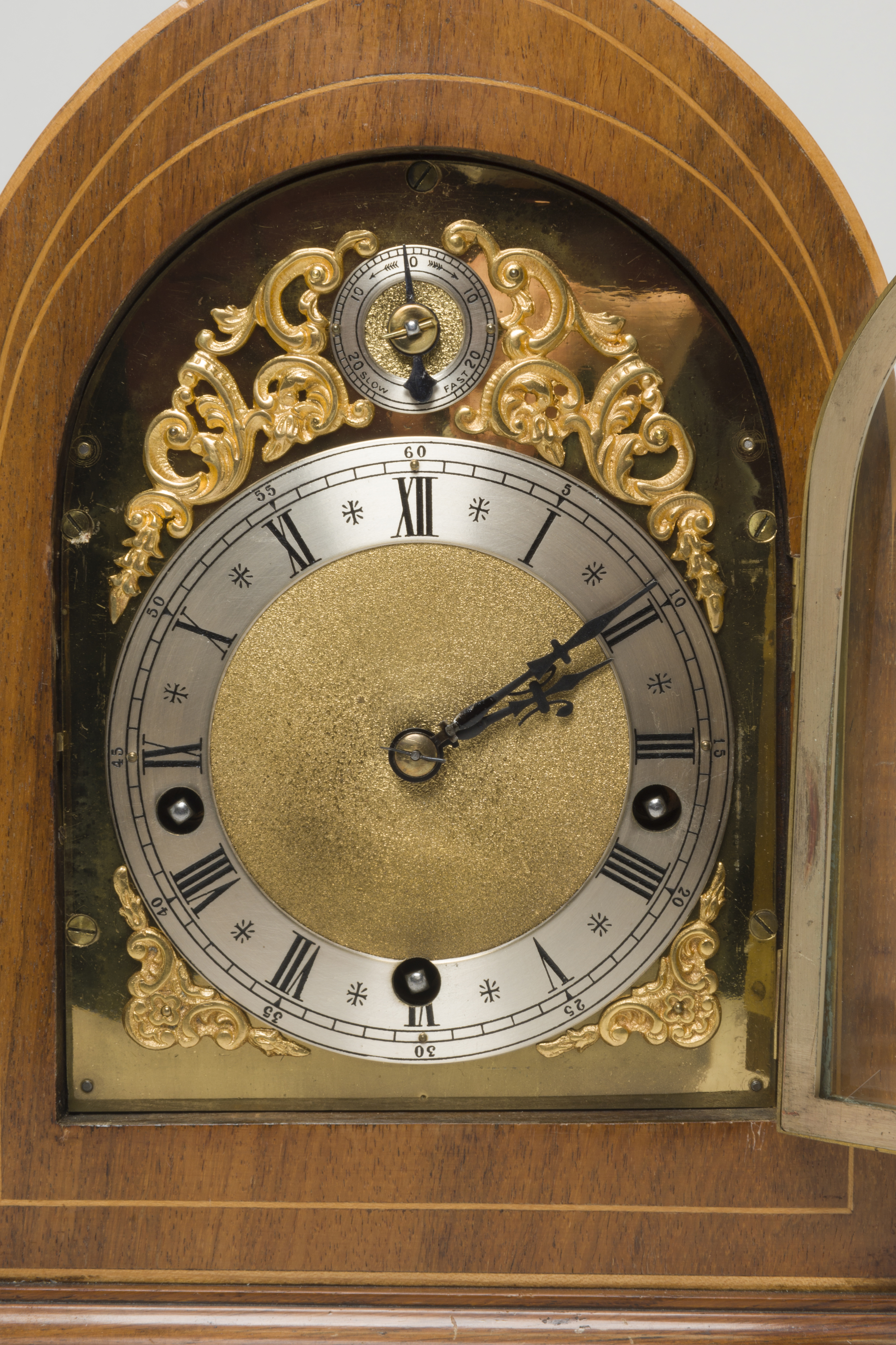 Satinwood banded inlay to the case gilt metal feet and mounts to dial surround five chimes to the interior pendulum and winder included.