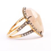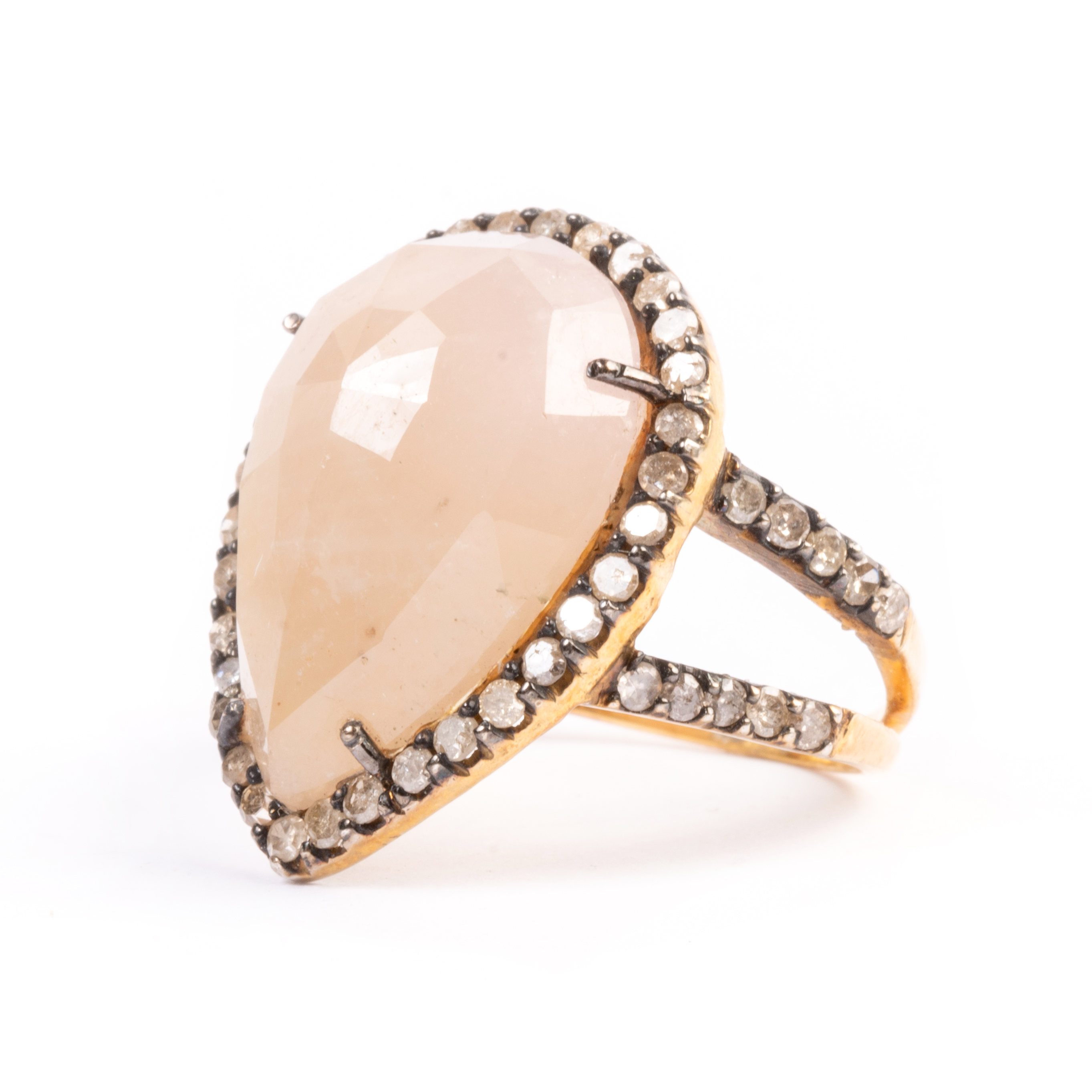 Featuring one pear shaped rose-cut yellow sapphire weighing approximately 12.25 cts., accented by round-cut diamonds weighing a total of approximately 0.65 cttw., set in an 18k yellow gold mounting.