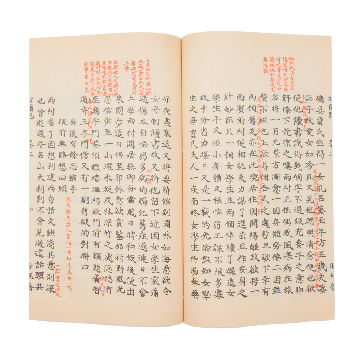 String-attached commentary manuscript on Cao Xueqins Story of the Stone, also known as Dream of the Red Chamber, as the Zhiyan Zhai (Red Inkstone) edition, black and red ink on rice paper.
